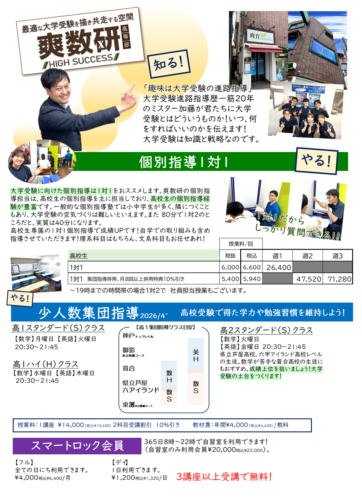 本山中学 本山南中学校の近くで地域密着の教育をしている爽数研の授業内容と料金のページです。少人数集団指導は小学生クラス・中学生クラス・高校生クラスがあります。個別指導(1対1、1対2)で生徒に合わせた対策、また集団指導との併用も可能です!